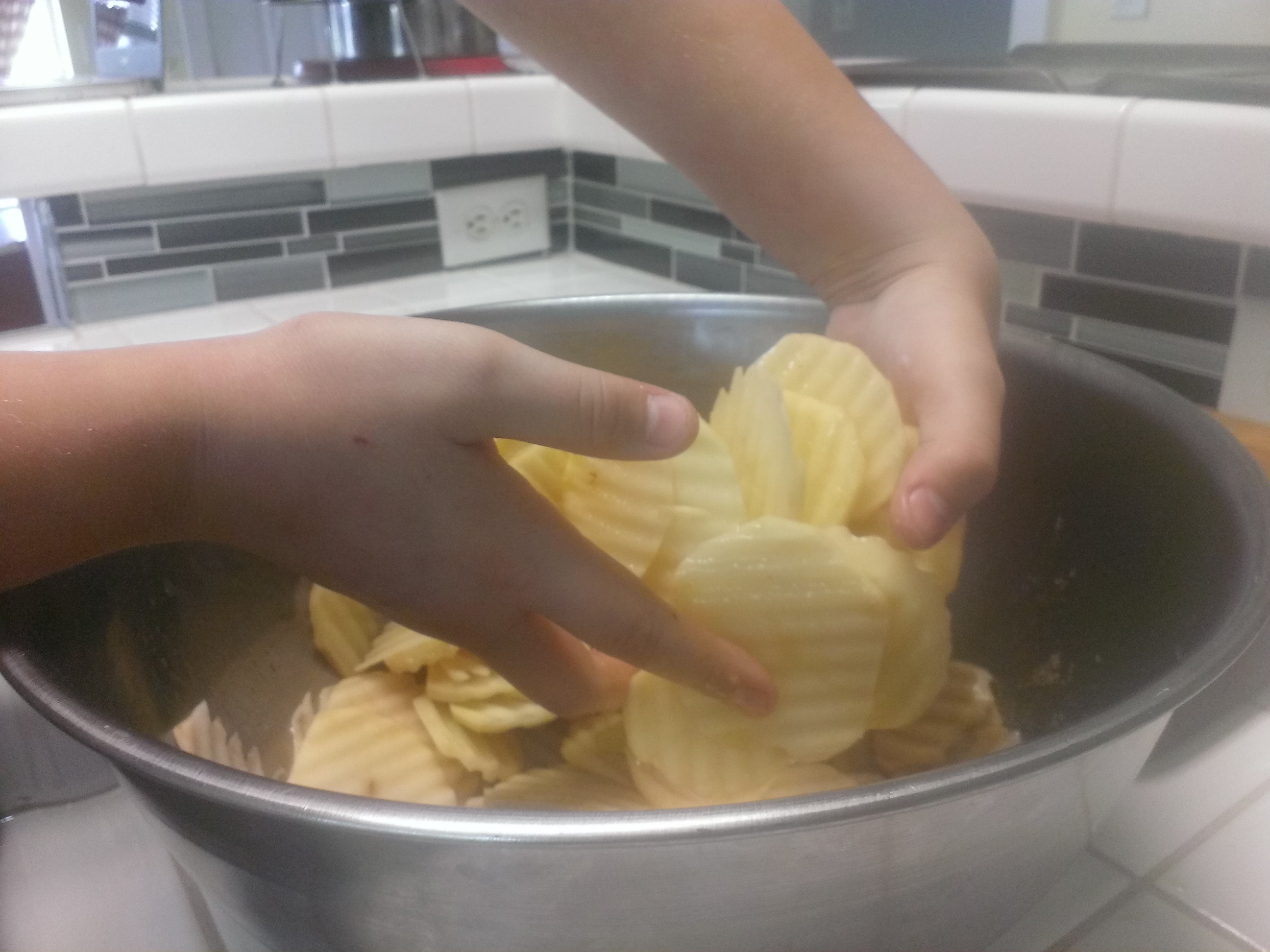 -Learn how to make potato chips.